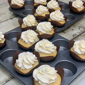 Light and fluffy vanilla cake with a delicate vanilla Chantilly cream filling and topped with our signature vanilla buttercream