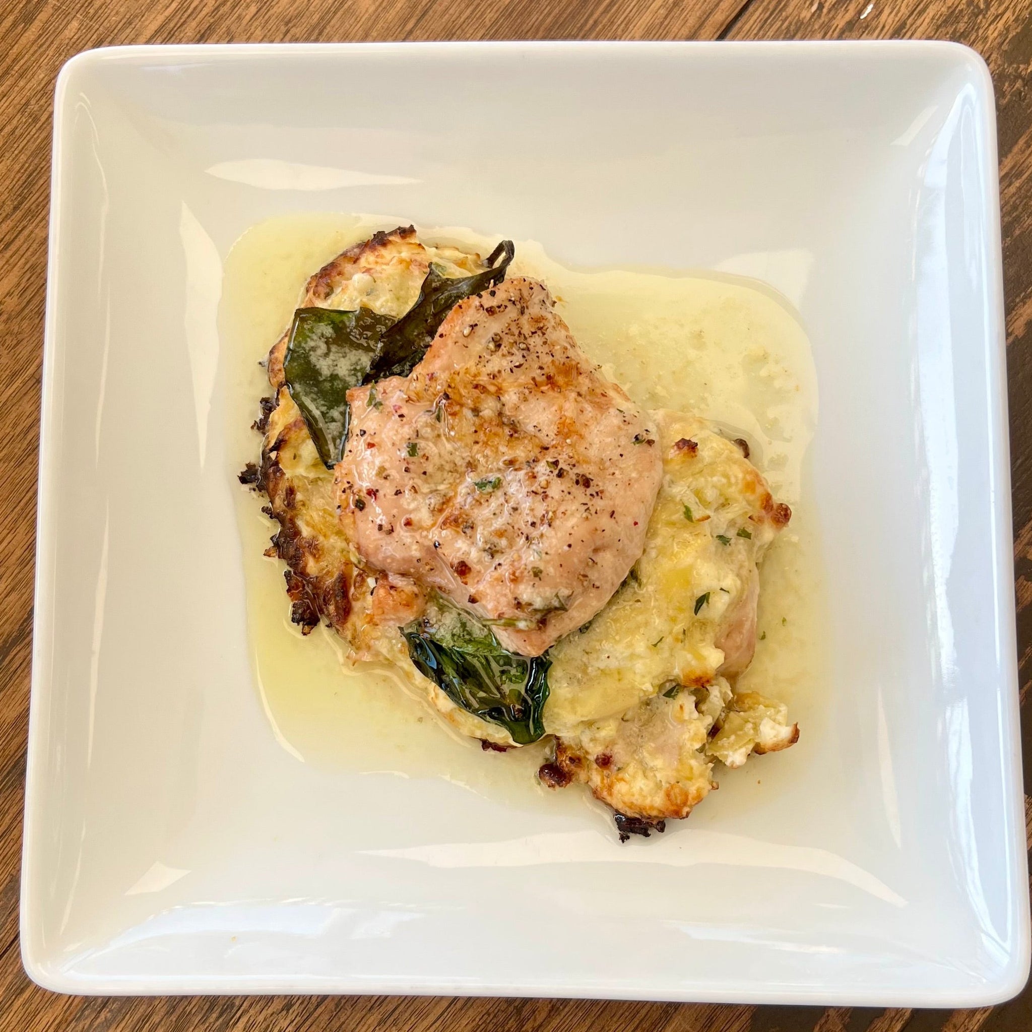 Chicken breast, artichoke hearts, spinach, cream cheese, garlic, butter, spices