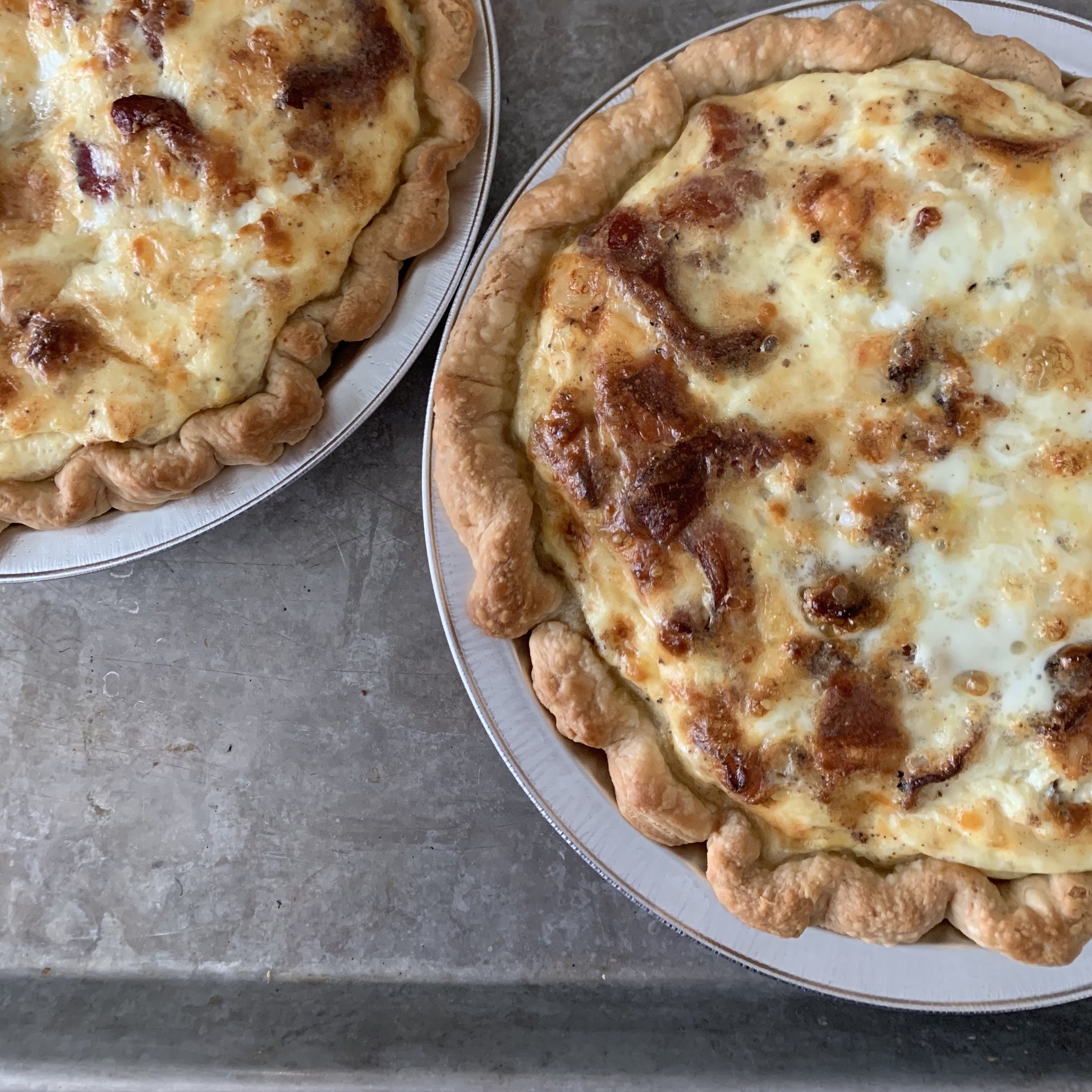 Our founder's take on the French classic: Bacon, Swiss cheese, onion, cage-free egg, cream, flaky crust, and flavorful seasonings.